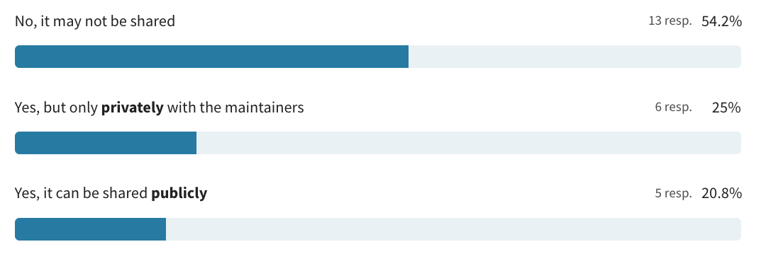 - 25% of respondents were willing to share their story, but only privately with the maintainers.