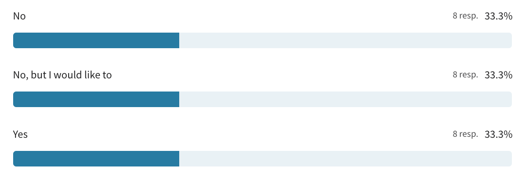 - An equal percentage of respondents (33.3%) expressed interest in becoming contributors in the future.