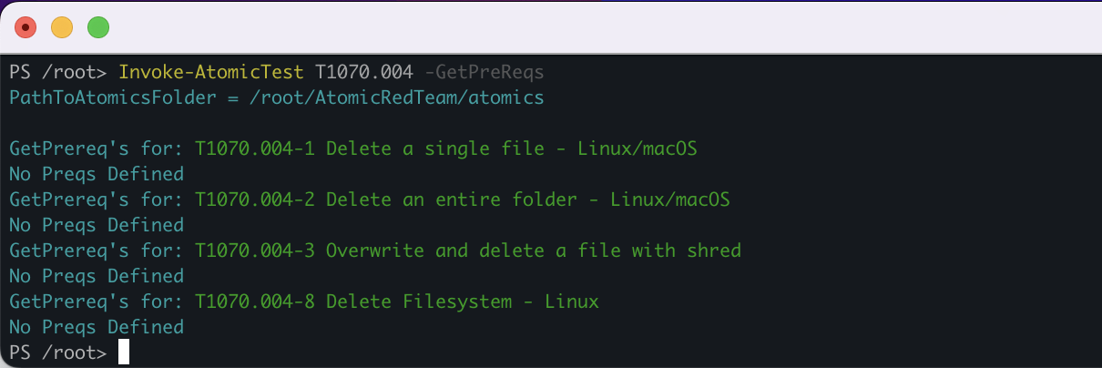 Invoke-AtomicTest T1070.004 -GetPreReqs